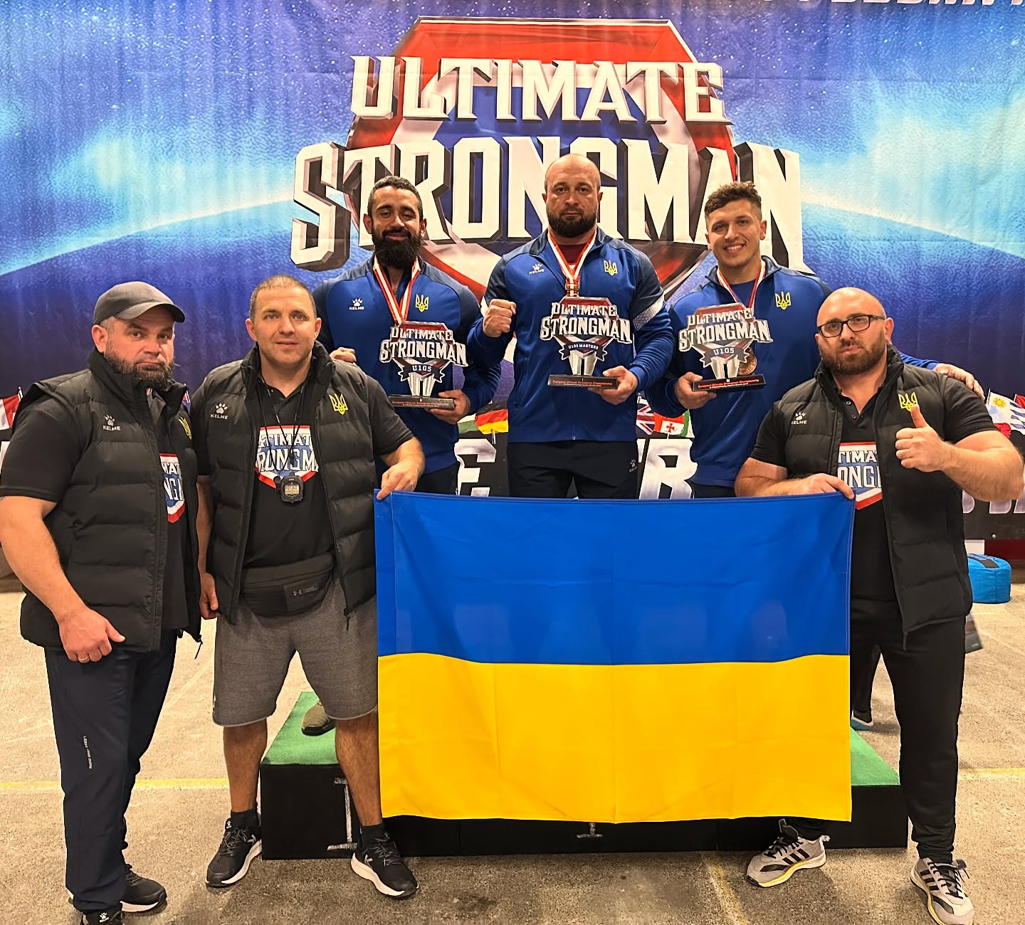 Наші чемпіони European Strongest Nation 2025: Валерій Газаєв, Володимир Рекша, Віталій Герасимов, Євген Настенко та Іван Мисковець.