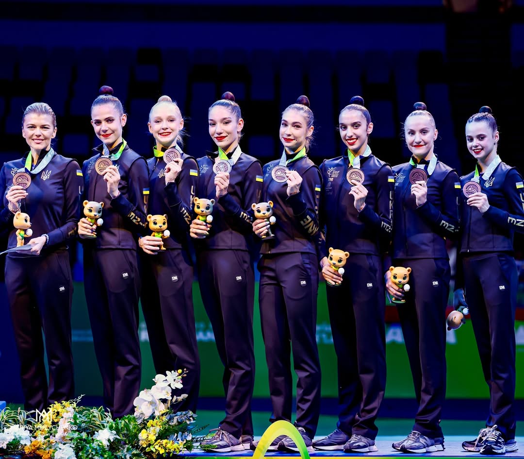 Українські художні гімнастки - бронзові призерки чемпіонату світу у командній першості.