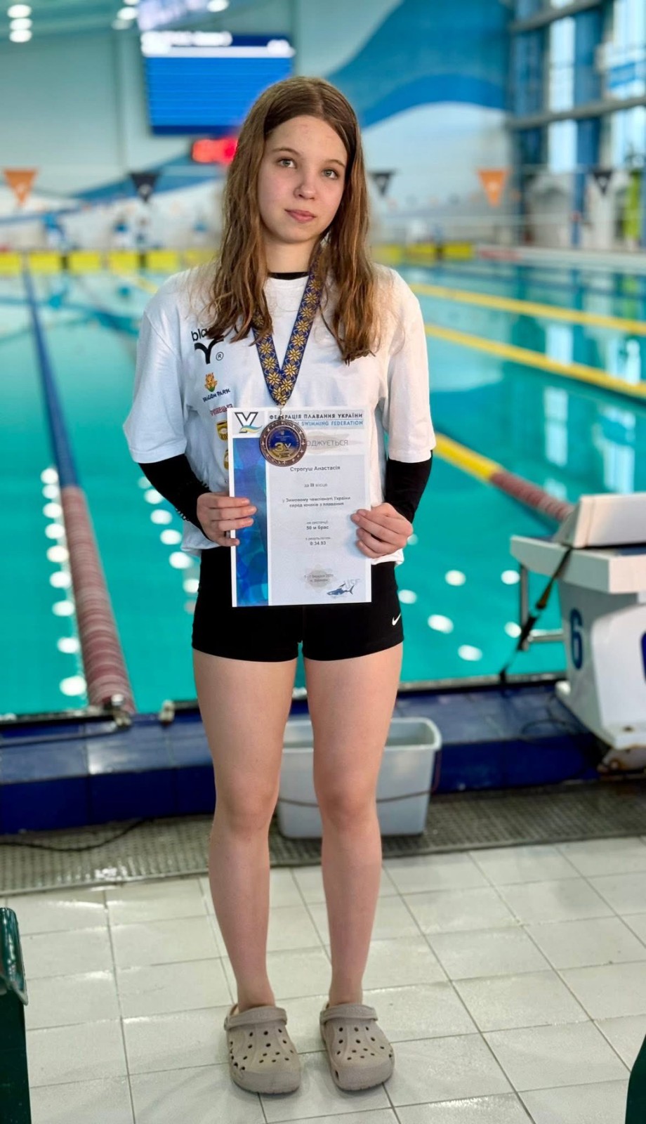 Наймолодшою медалісткою у складі збірної Львівщини стала 15-річна Анастасія Строгуш (на фото – нижче). У змаганнях серед дівчат U-16 на дистанції 50 метрів брасом вихованка клубу КВВС Аквапарк «Пляж» (тренер – Святослав Грось) у фіналі з результатом 34.93 секунди фінішувала на третій, тобто «бронзовій» позиції. Попереду неї були лише Яна Клікоцька з Рівненської області та Софія Балюра з Сумщини – золота і срібна медалістки, які зупинили час відповідно на позначках 32.63 та 34.08 секунди. Зазначимо, що у підсумковому протоколі юніорок U-18 Анастасія Строгуш замкнула п’ятірку найкращих – до місця на медальному подіумі забракло 0.85 секунди. Також необхідно відзначити виступ Анастасії на дистанції 100 метрів брасом – результат 1 хвилина 16.89 секунди приніс їй п’яте місце у віковій групі U-16 та сьоме у підсумковій класифікації юніорок U-18.